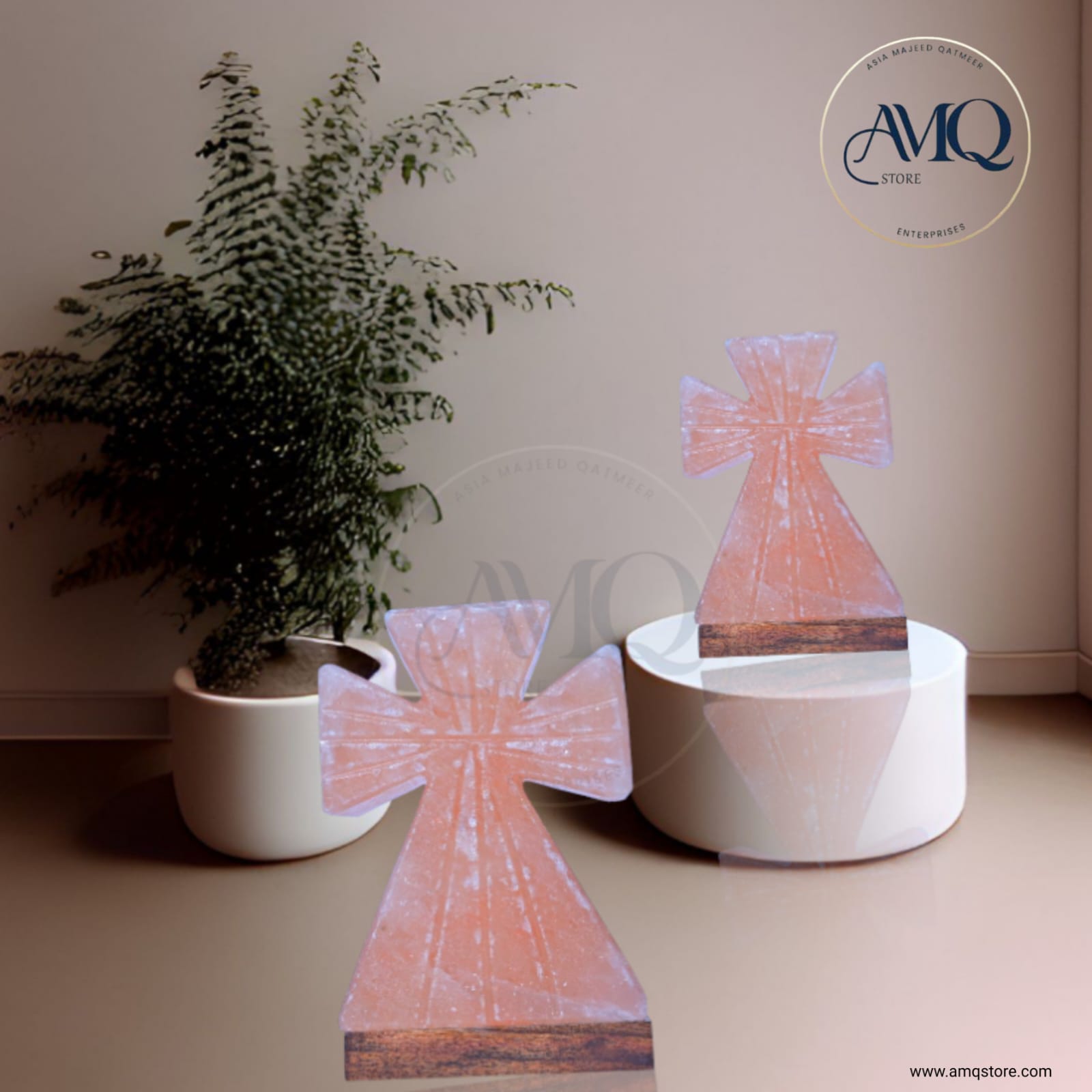 This beautiful Himalayan Salt Cross is carefully handcrafted from natural pink Himalayan salt crystals.Mounted on a polished wooden base, it serves as a unique decorative piece and a spiritual symbol. When illuminated, it emits a warm, soothing glow that enhances the ambiance of any room while naturally purifying the air. Perfect for homes, churches, meditation rooms, or as a thoughtful gift.